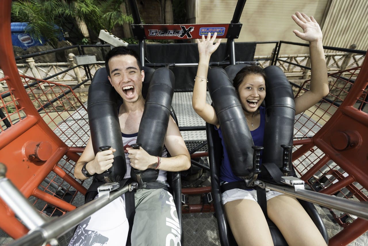 Defy gravity at lightning speeds with Asia’s Highest and Fastest Slingshot Ride, the G-Force X that takes you from 0 km to 120 km in a mere of 2 seconds to 65 metres in height. Glide through the air with Sunway Lagoon’s Flying Fox, one of Malaysia’s Longest trail at 206 metres and take the ultimate dive with the Bungy Jump.