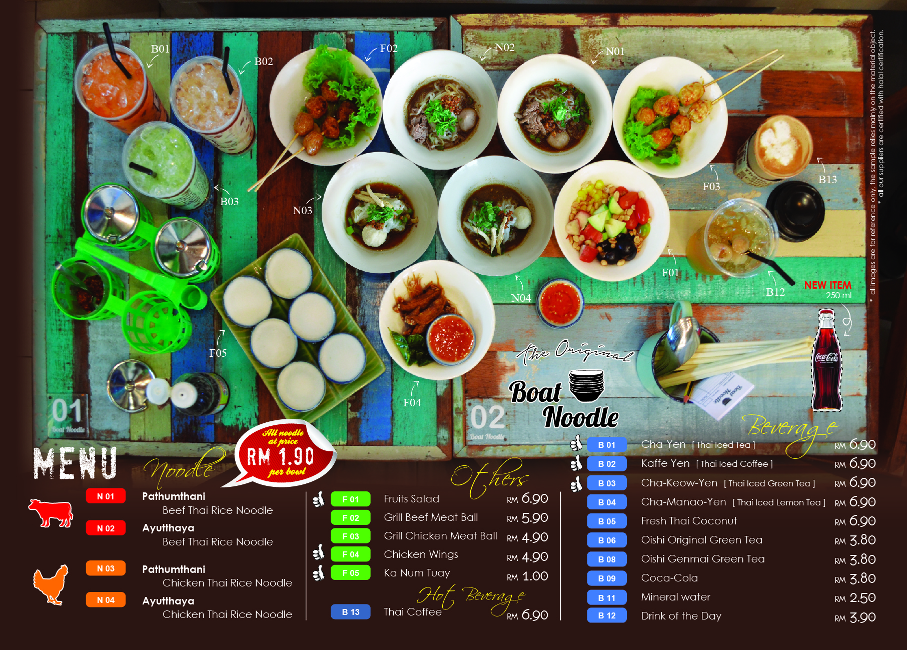 Currently, Boat Noodle has seven outlets in Malaysia, which are strategically located at Empire Damansara, The School at Jaya One, Ikon Cheras, Publika, Sutera Mall at Johor Bahru, Gamuda Walk at Kota Kemuning and Klang Parade.