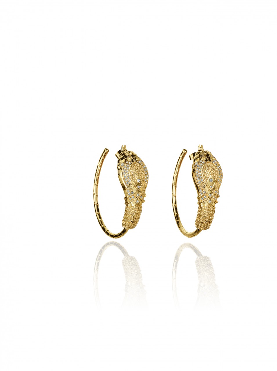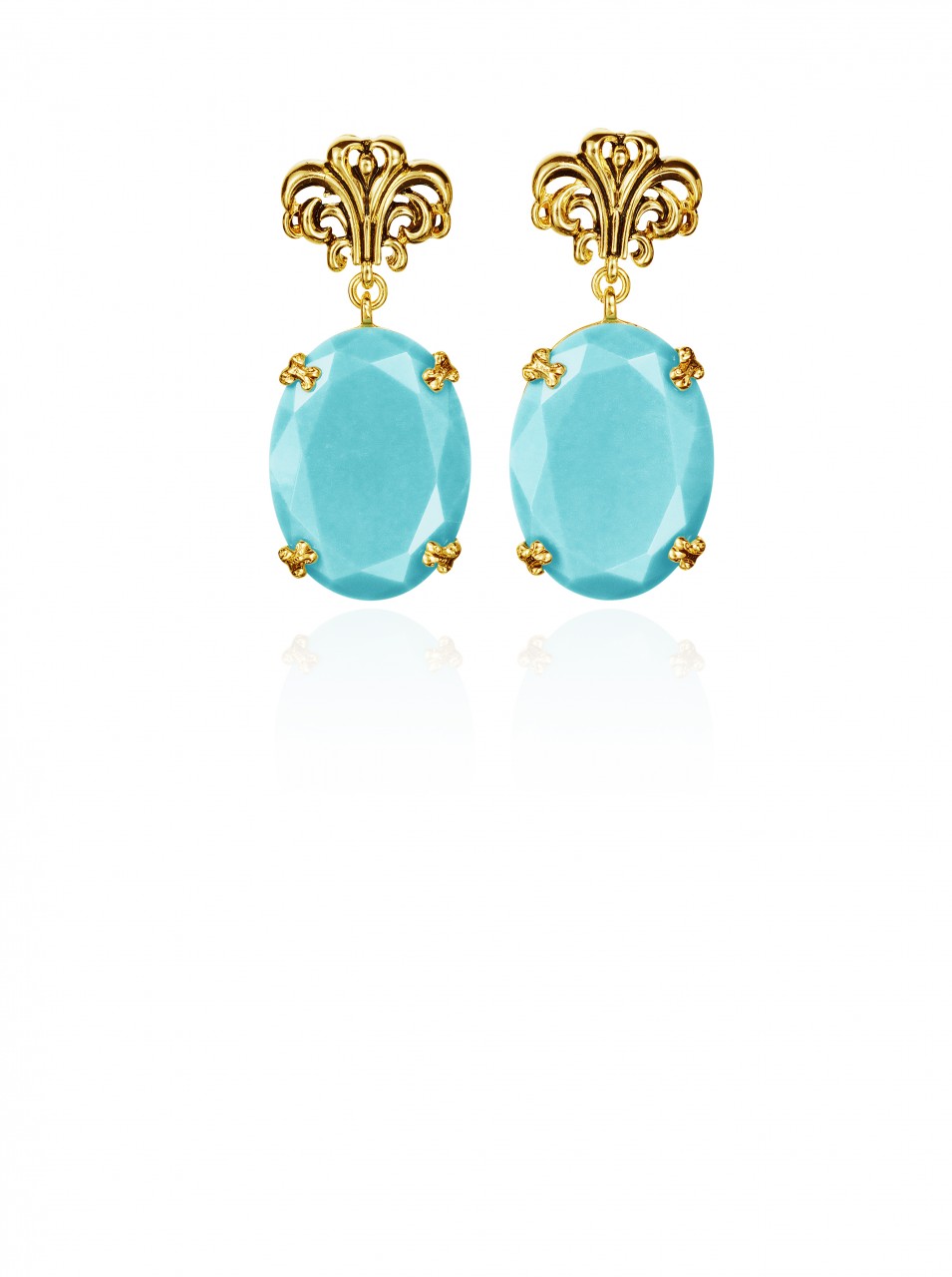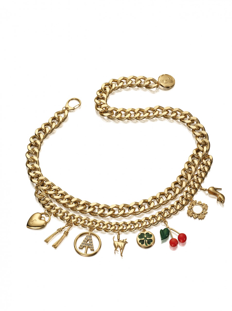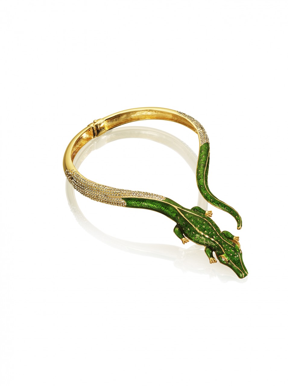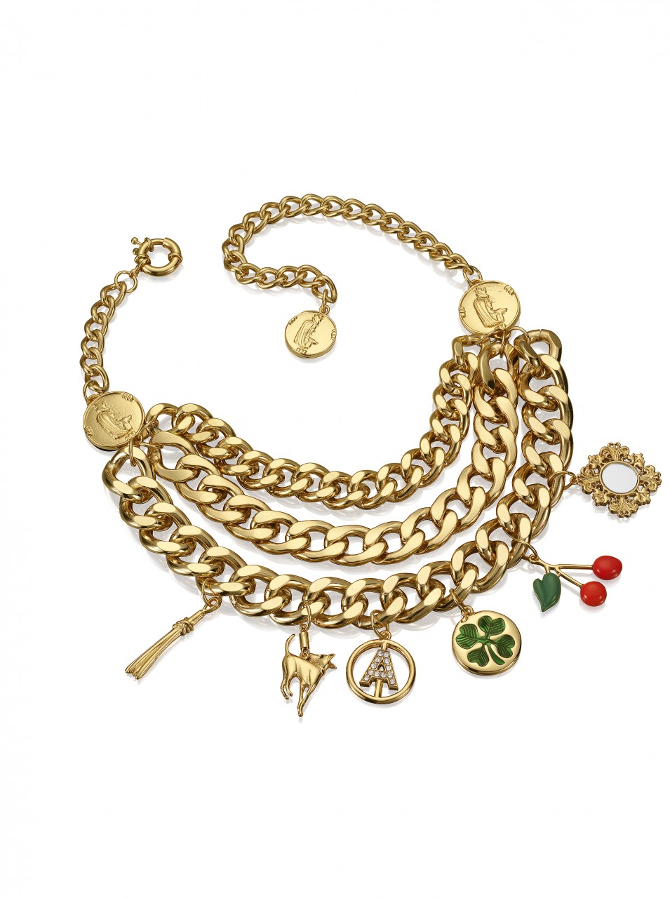 The collection features jewelry, sunglasses, accessories and shoes. In reflection of Anna Dello Russo’s playful nature, she has also created a special suitcase, a turquoise trolley with gold motifs designed to recreate the excitement for Fashion Week tours.