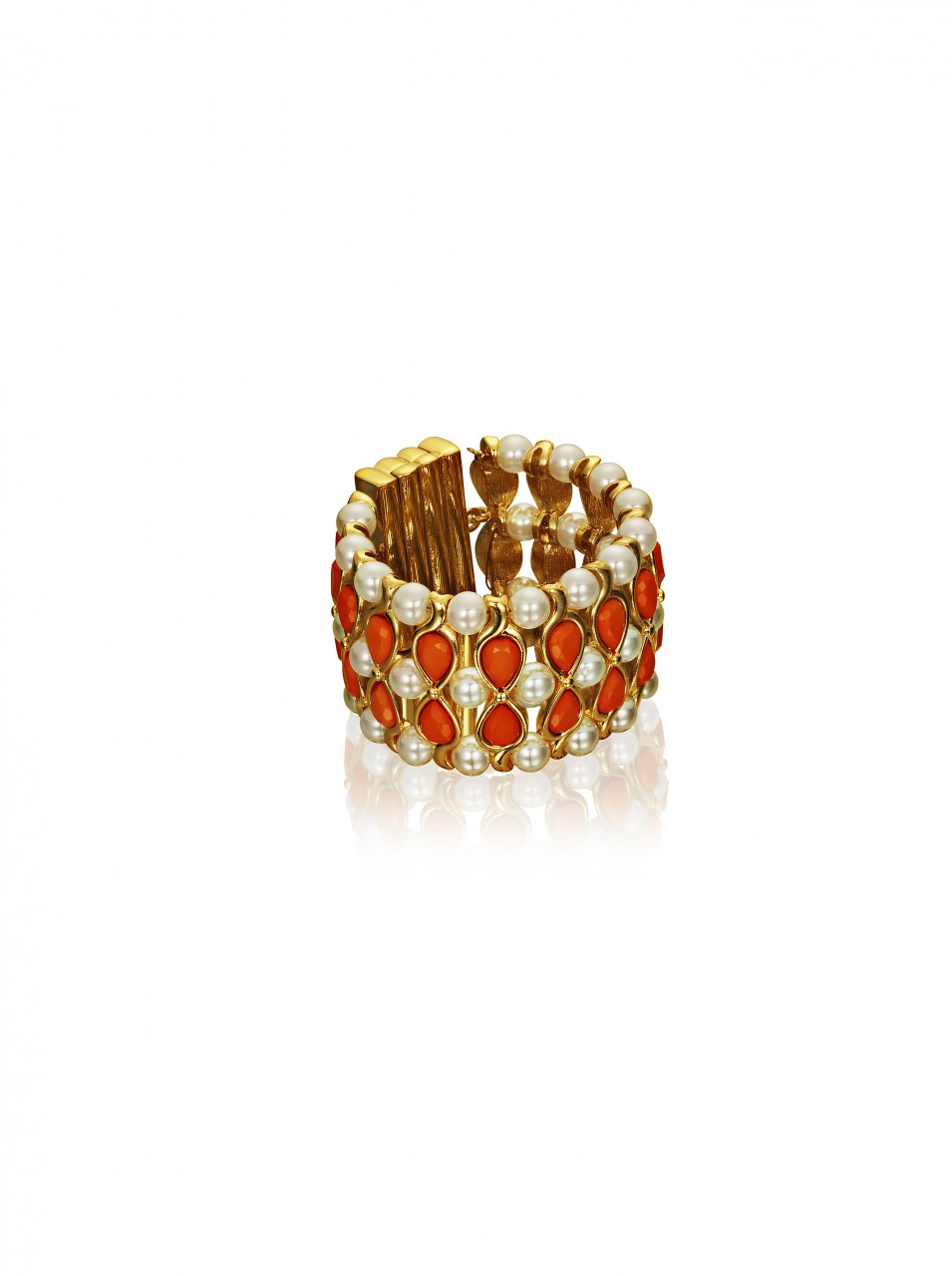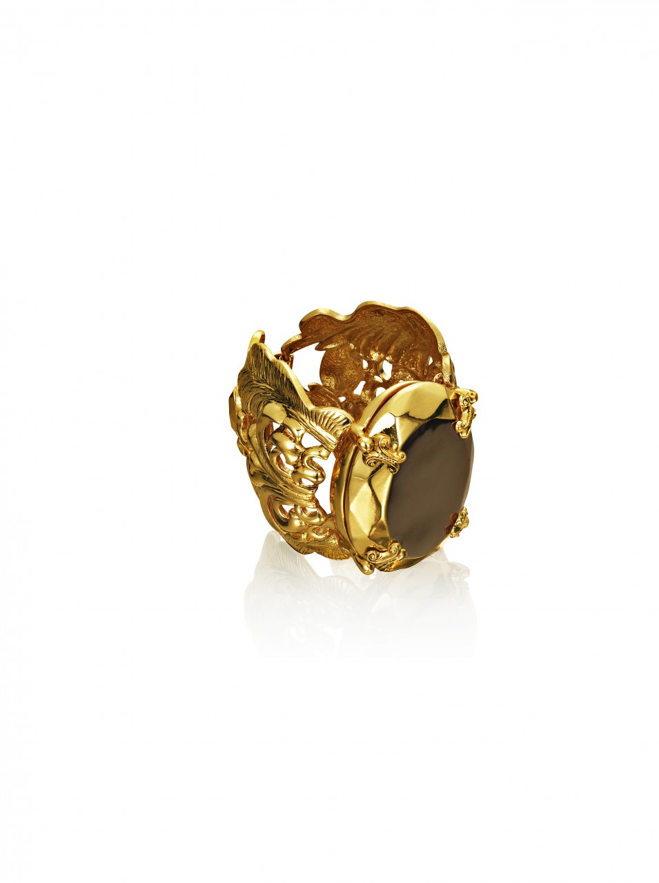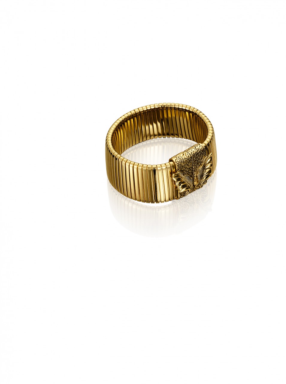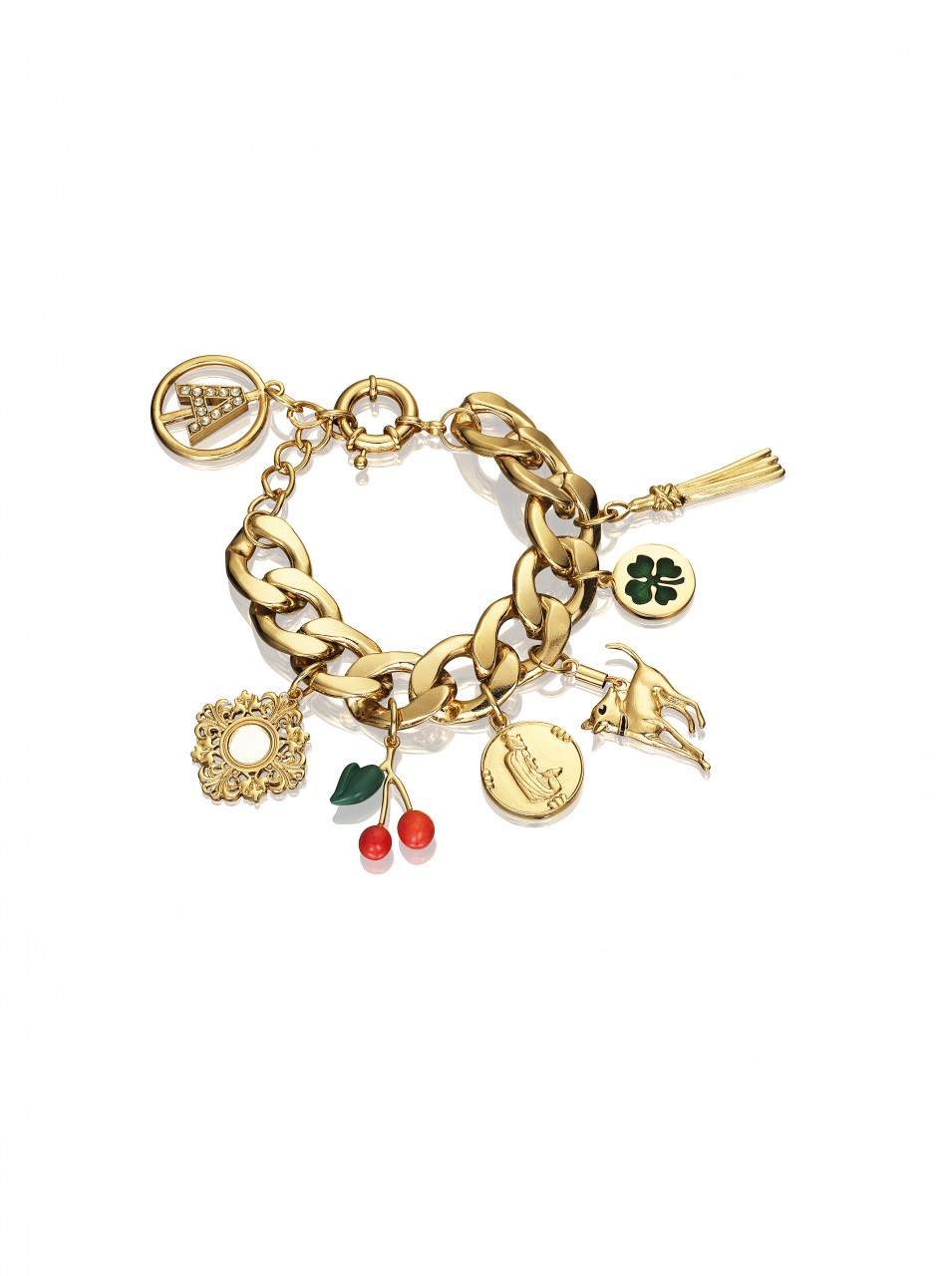 The collection features jewelry, sunglasses, accessories and shoes. In reflection of Anna Dello Russo’s playful nature, she has also created a special suitcase, a turquoise trolley with gold motifs designed to recreate the excitement for Fashion Week tours.
