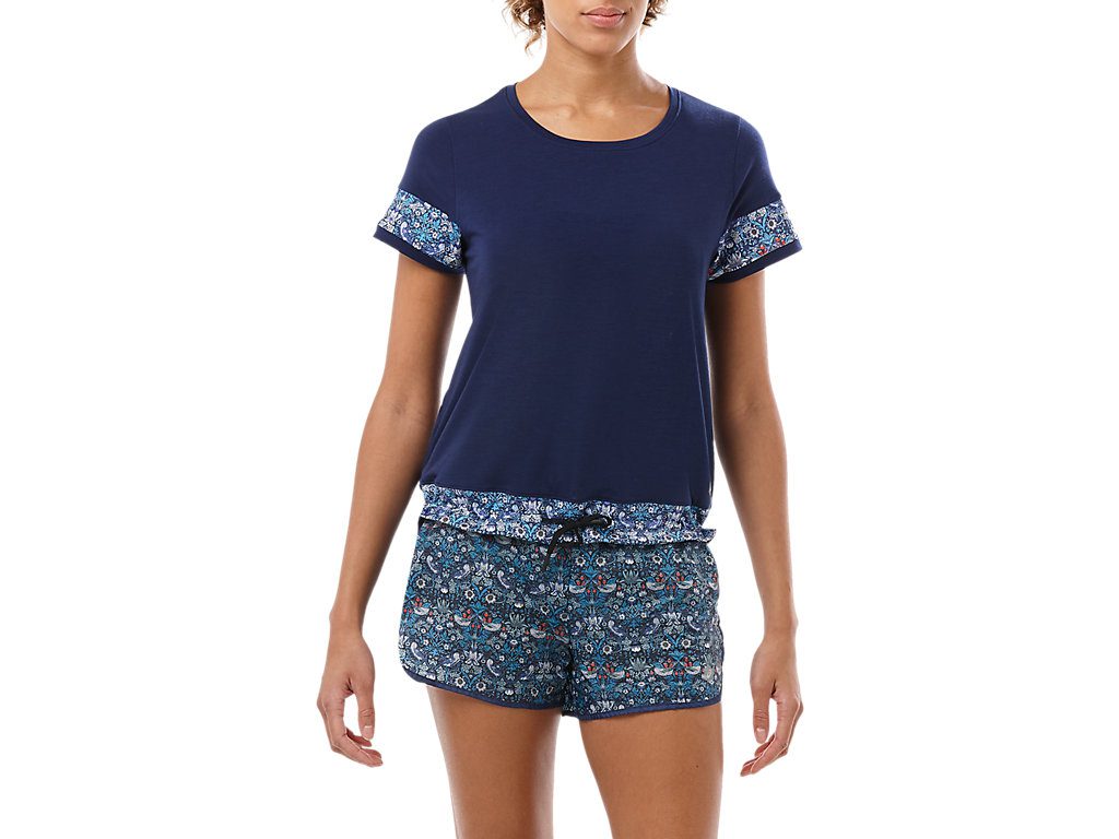 For this collection, two of Liberty Fabrics’ popular prints — Strawberry Thief and Ciara — are used on the Woven Hooded Jacket, the Woven Short Pant, the Knit Tight, the Short-Sleeve Top, the Knit Headband, and GEL-FIT SANA SE.