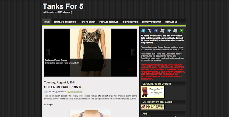 Got your attention yet? Tanks for 5 as it’s name suggests offers tank tops of good design and impeccable quality at only believe it or not, RM5! Do note that their highly stretchable tank tops are more suited for those who wear sizes UK10 and below. Apart from tank tops they also carry leather cuffs, belts, jackets, skirts, maxi dresses, dungarees and also shorts at affordable prices that won’t break your wallet. In fact, their tanks and spaghetti strap tops are so cheap and good that the one time I made a purchase it felt like daylight robbery. Here are some pieces that caught our eye.