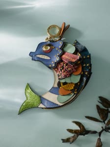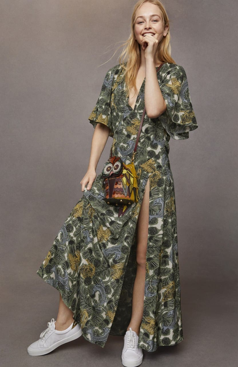 In ready to wear, Beasts appear as embroidered motifs on the Burberry classic cashmere scarf and leather appliqués on jersey sweaters and capes. Prints are worked on to wool-cashmere ponchos, wool-silk scarves and silk-twill skinny scarves. A rich colour palette of ochre yellow, burgundy reds and blue grace the collection for a touch of drama.