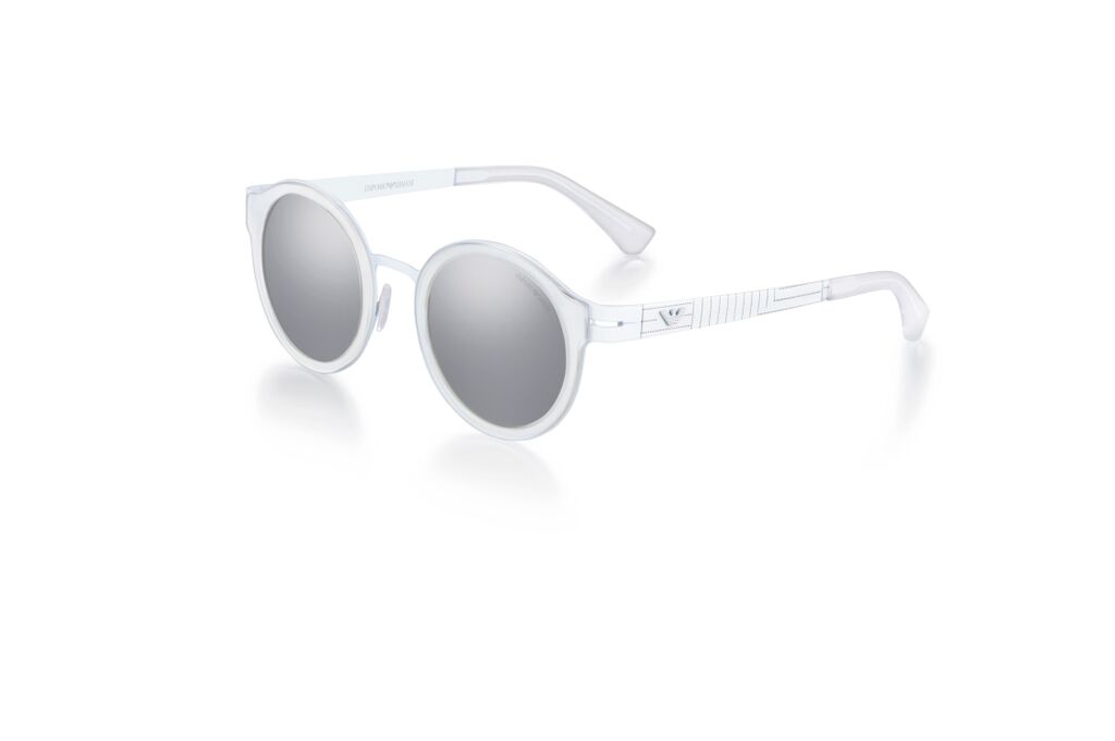This style has a classic round shape, reflecting current trends but with a more contemporary touch. The interplay of transparencies, graphic textures and the unusual construction make for a modern allure. The transparent coloured rims, mounted on a matte metal structure, define this frame offered in full rubberised colours, matching the logoed temples. Available in two colour ways: matte transparent white with grey silver mirror lenses, rubberised blue and transparent blue with blue lenses. This Emporio Armani Round eyewear costs RM 819.