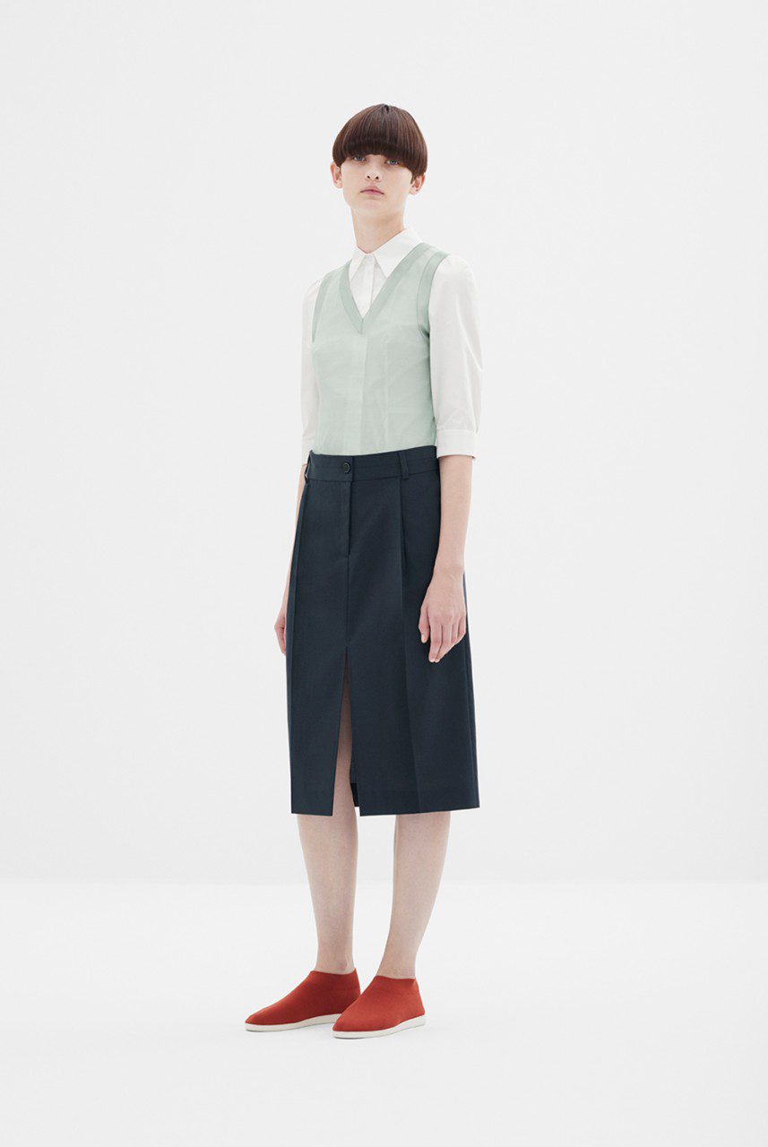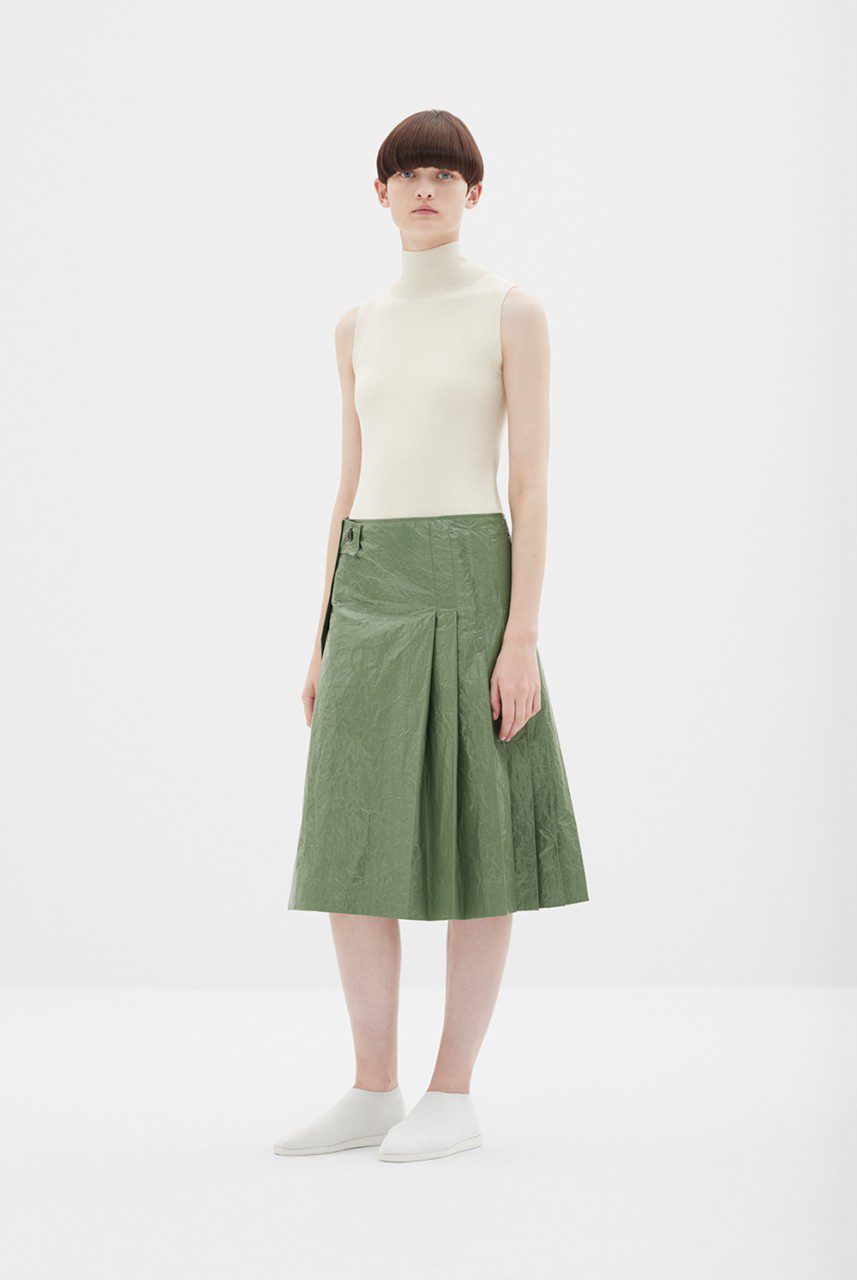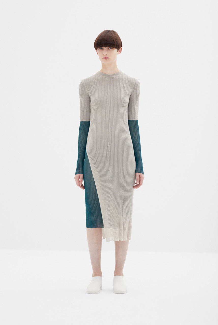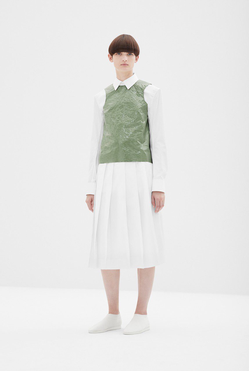 Designs are brought to life by cottons in various forms while knits of various weights are crafted from barely-there silks, chunky paper yarns and starched summer wools together with technical innovations like coated Tyvek; interspersed throughout to reimagine the classics.