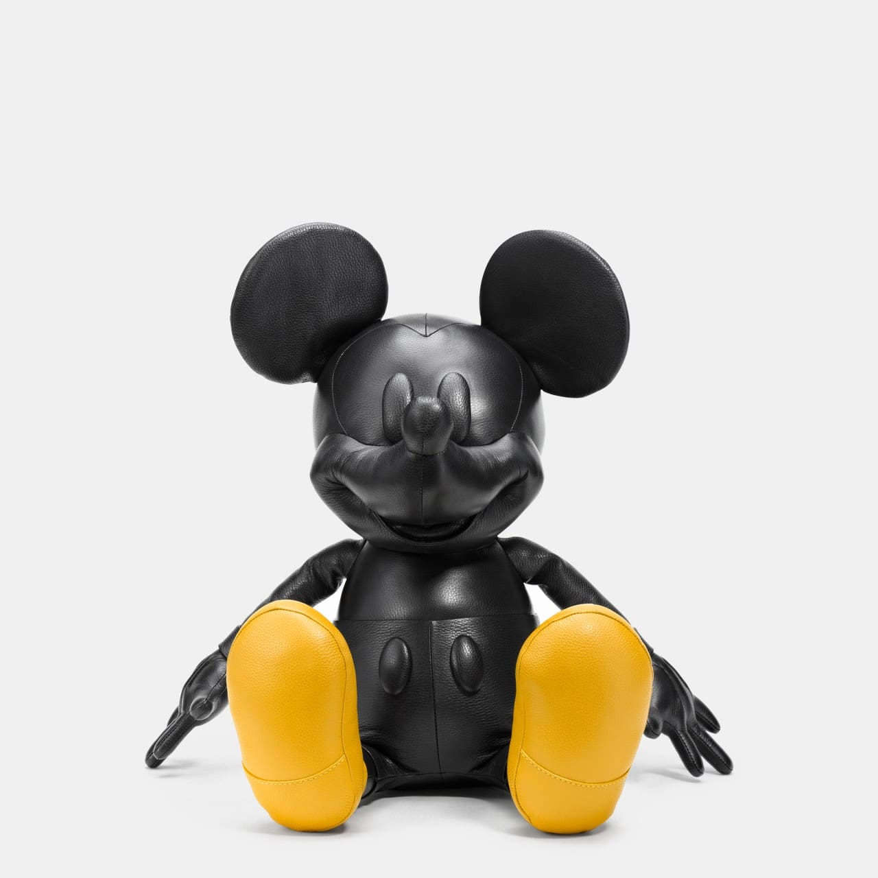 The offerings include sneakers with Coach’s signature hangtag playfully reconstructed in the shape of Mickey’s ears, an edgy Mickey ear silhouette studded biker jacket, and classic solid colour bags as well as leather goods in an array of styles embellished with a Mickey Mouse emblem which includes a re-edition of the archival 1960’s ‘the Kisslock’ bag. Collectibles like black leather Mickey dolls and shearling beanbags are also up for grabs.