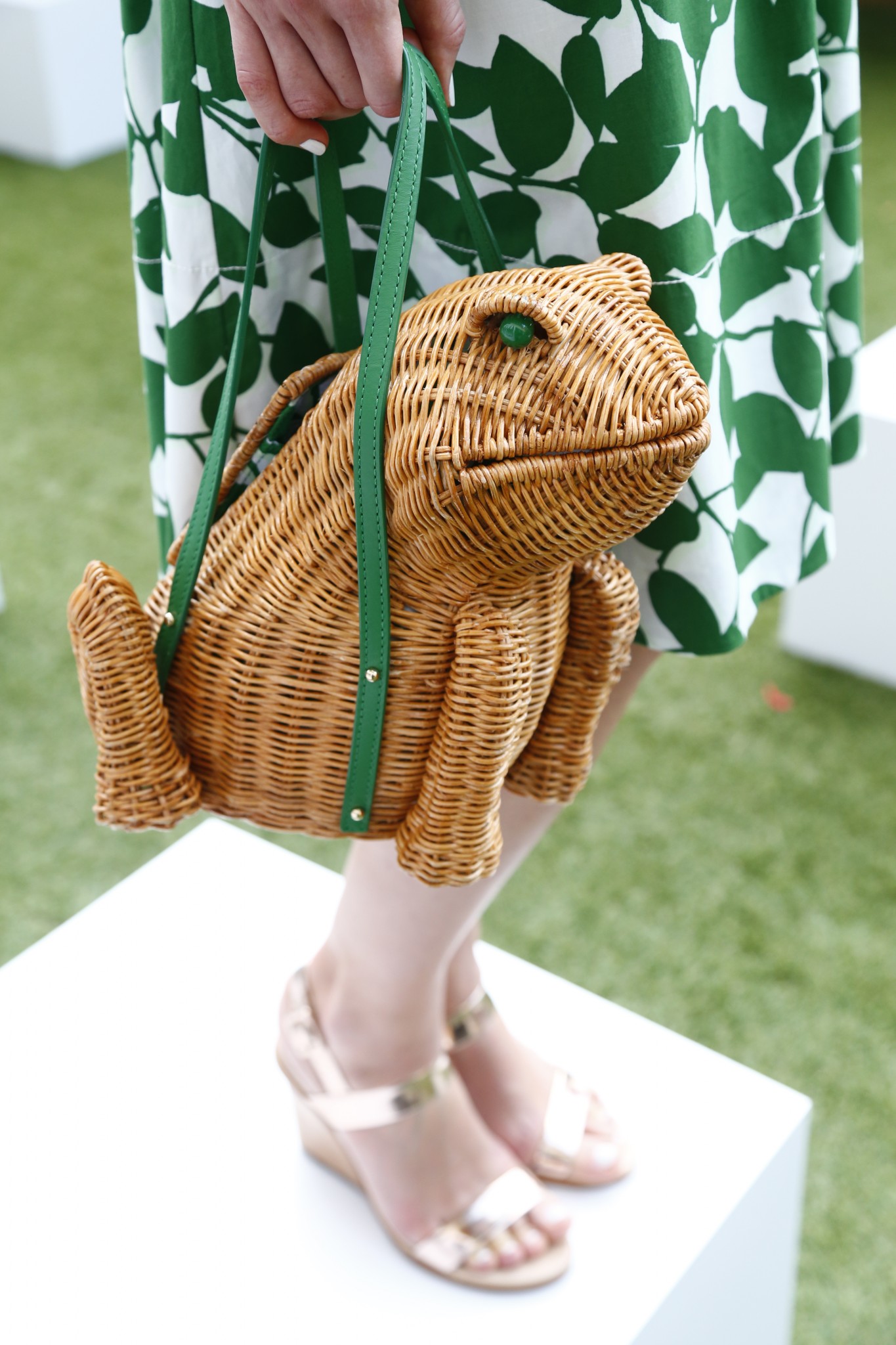 The highlights of ready-to-wear design details consisted of leather panelling, scallop detailing, lady bug appliqués, neoprene, exterior zipper pulls, and relaxed, oversized silhouettes. The handbag collection included new ranges and refreshed novelty styles, including an oversized heart tote and winking clutch from the February launches. Carrying the whimsical spirit of the brand, bucket hats in tiered raffia and neoprene baseball hats were also seen.