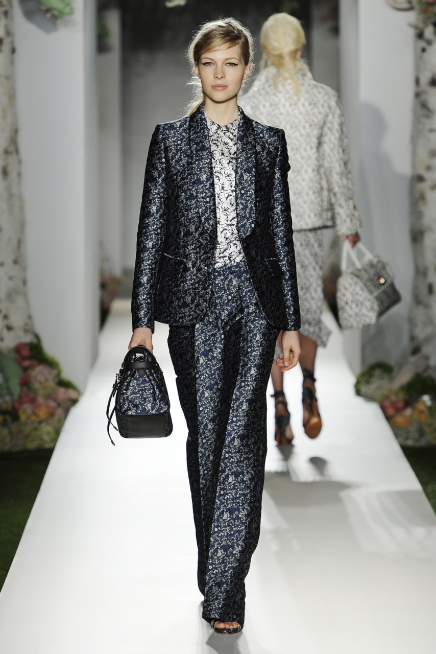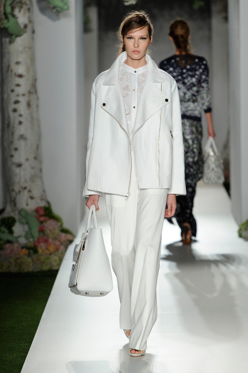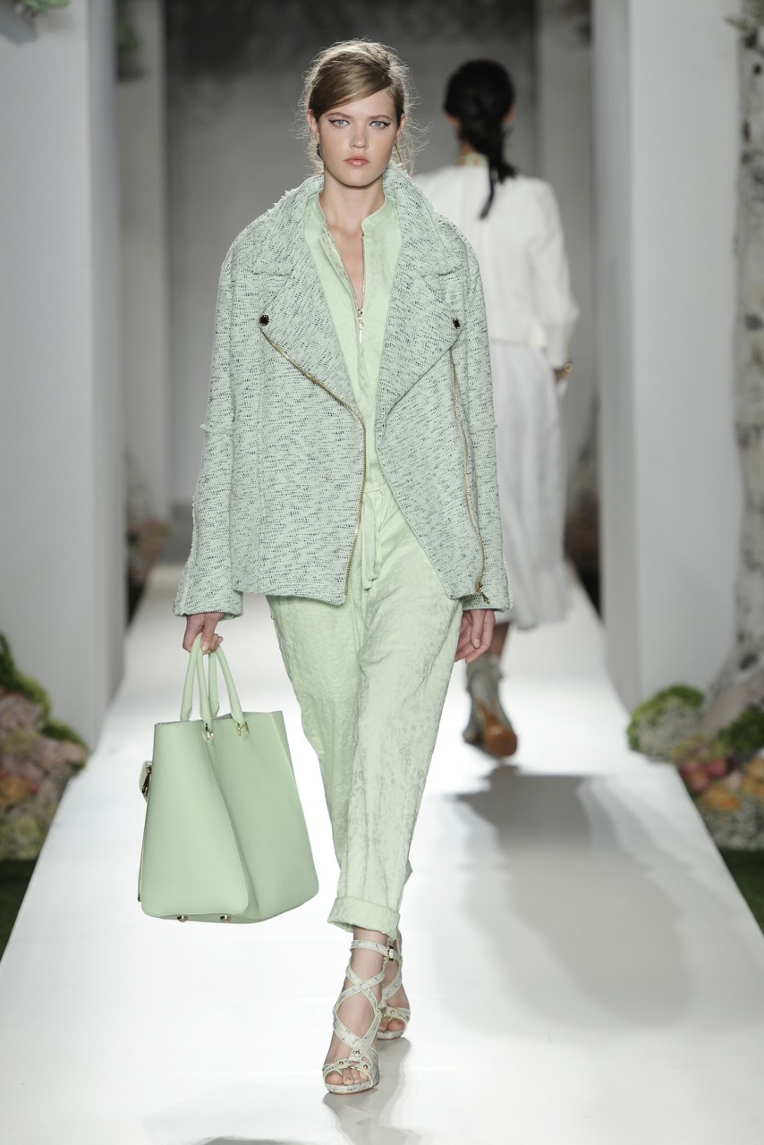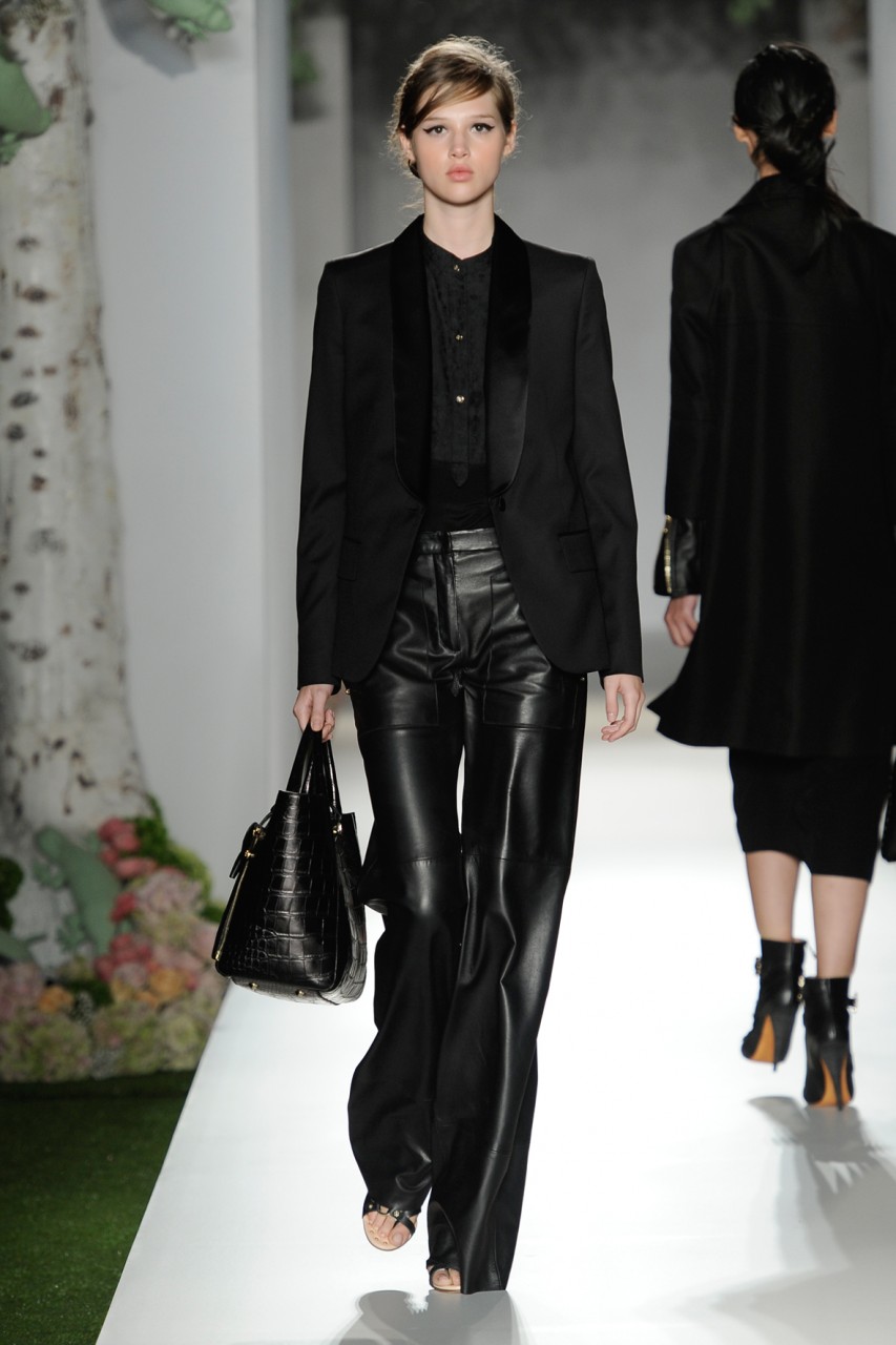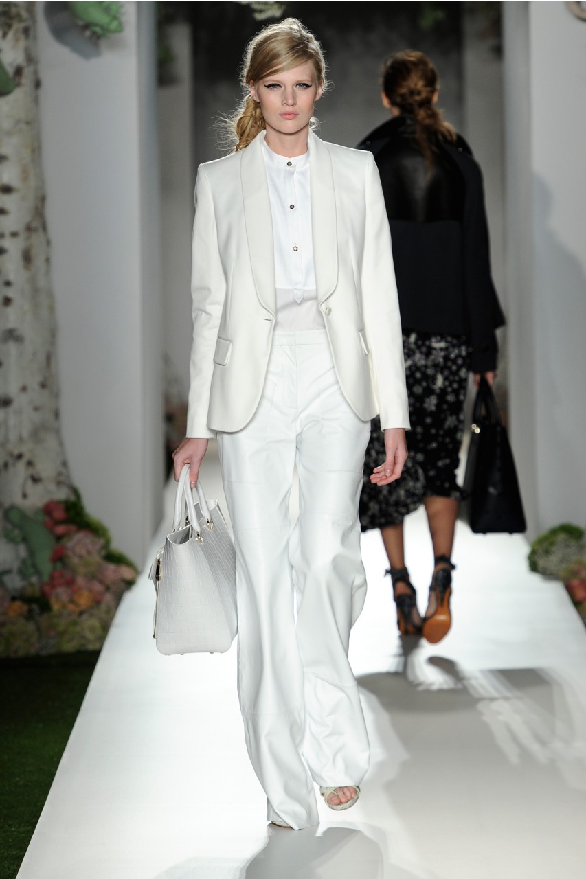 What we’re noticing most in this Spring/Summer 2013 collection is a mix of light pastel shades and a mixture of silk materials. We also noticed that there are more blazers in the collection and elephant trunk pants, something that’s been brought back from the past in a way. These looks can be worn on an everyday basis, which is what we always look for in a Spring/Summer 2013 collection.
