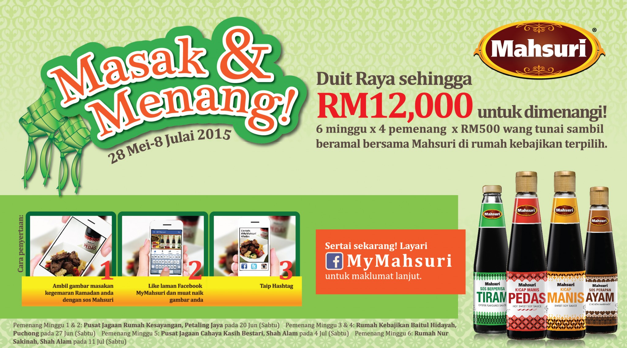 In each week, the most outstanding entry will win a cash prize of RM500. The entire six week contest will feature 24 winners, who will bring home a total of RM12,000 in cash prizes this Hari Raya! Winners and their families will also be invited to attend a lively buka pusasa event in one of four charity organisations. Mahsuri will be taking part by donating its sauces to each charity home, as well as the entire buka puasa meal.