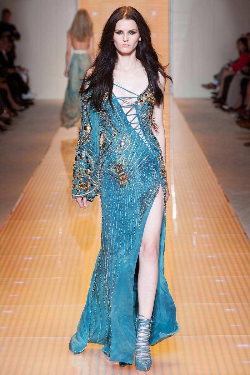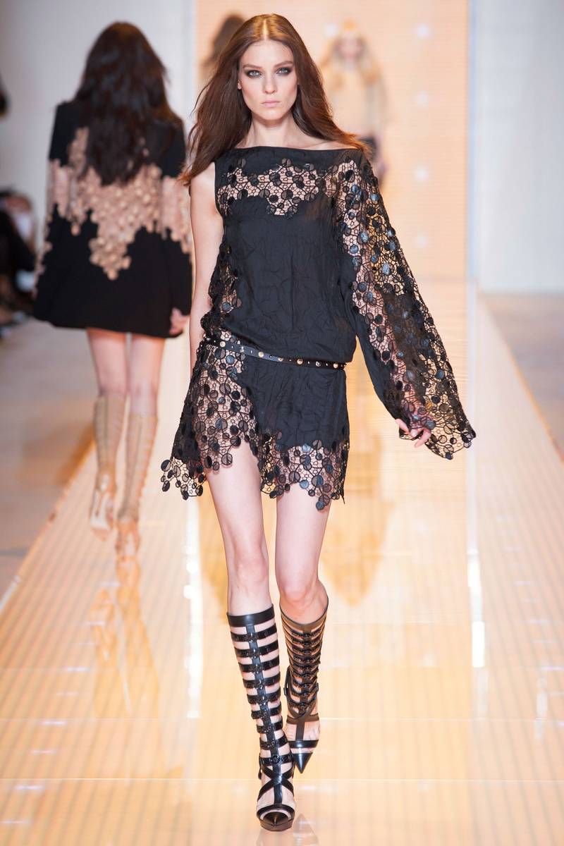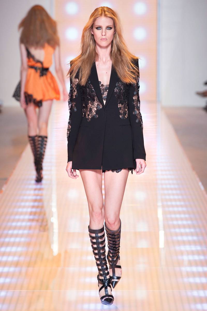 We’re noticing a lot of midriff baring pieces in this Spring collection. We are also seeing a lot more lace going around being places in the oddest areas but it all looks so good. There is also a lot of the combination of nude and black tones which adds that pump of chic into all the designs. As for the evening gowns, we’ve noticed that trend for this collection would be the diagonal ‘V’ neck cutting. Which we think is original and different that what you usually see when it comes to evening gowns.