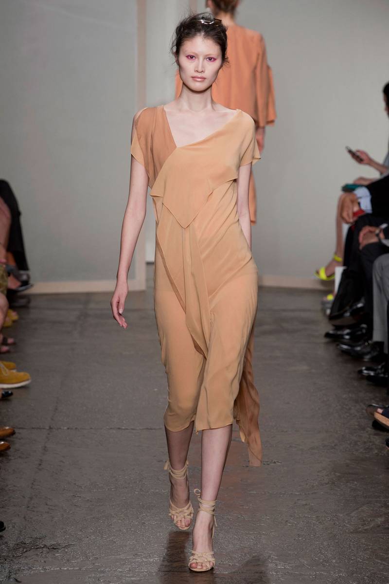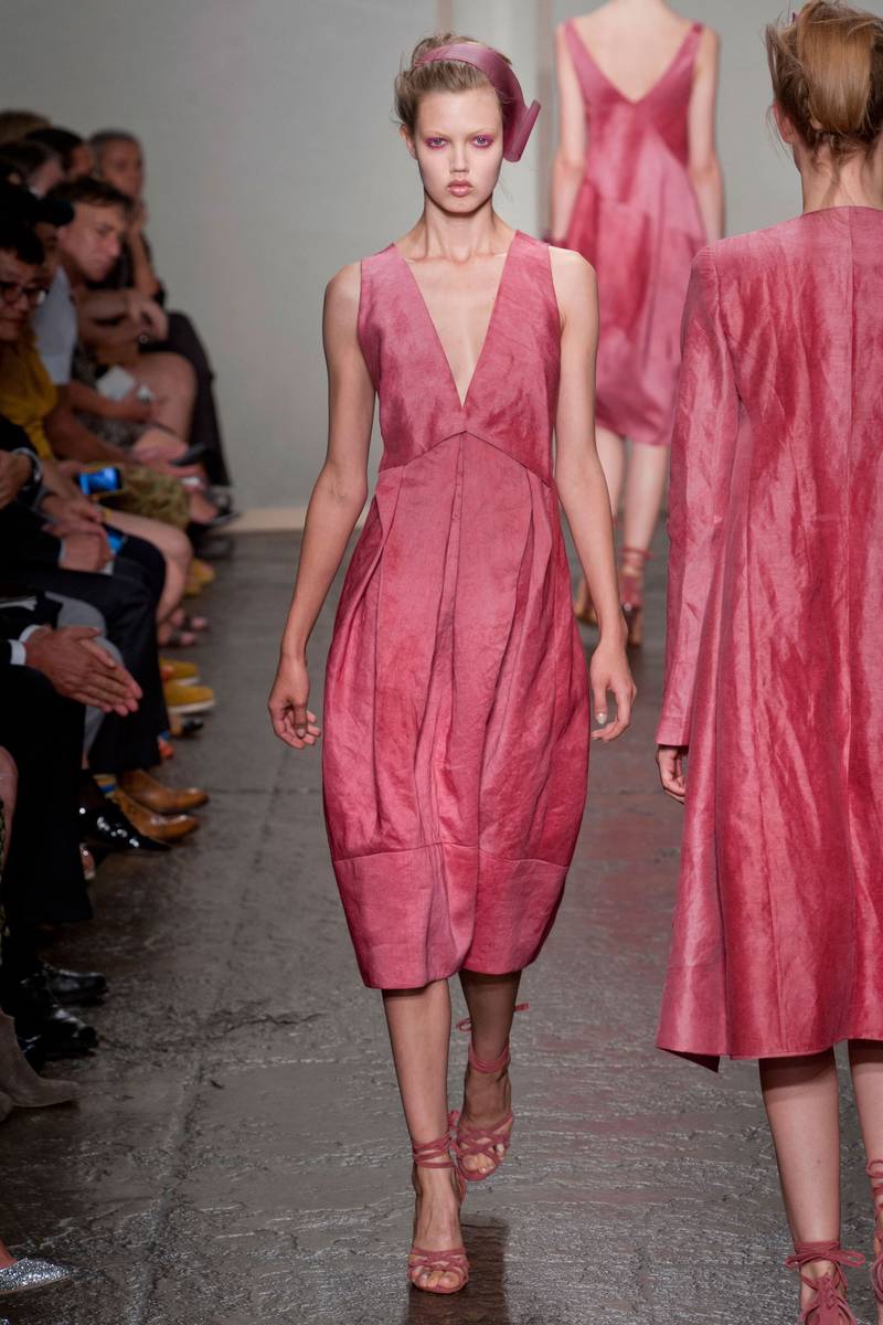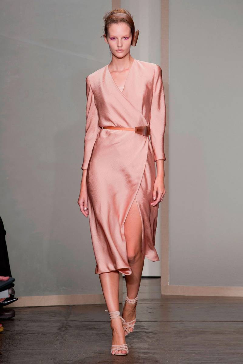 What stands out the most from this runway show is the make up – despite having soft colours, Donna Karan opped for bold make up. All the models wore bright pink eyeshadow that gives the models a very alluring feel.