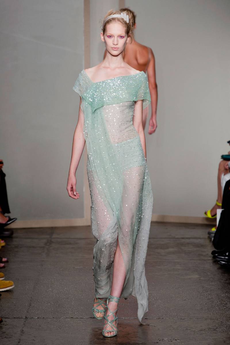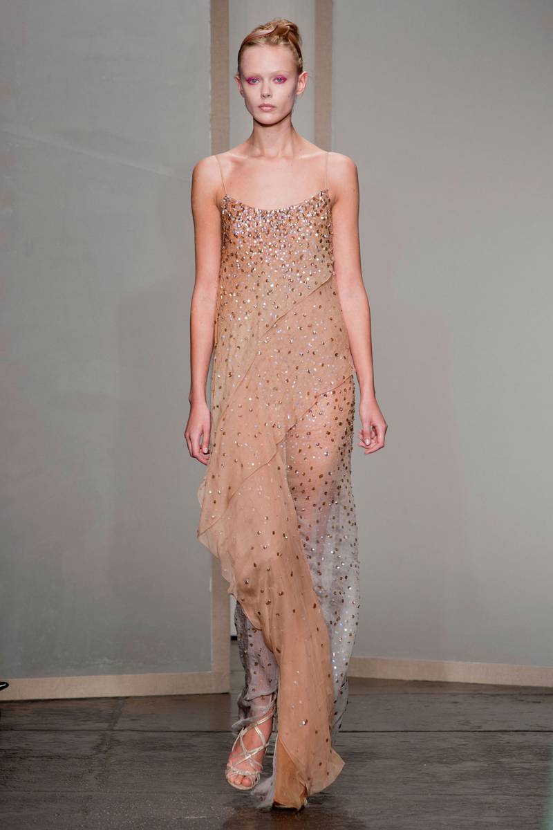 From the soft shades of blue and pink to the bold tones of blue – there’s so much to enjoy in this entire collection. And one thing that all these designs have in common – it’s the way everything falls off the models bodies so naturally. It’s as if Donna Karan created these designs by the way the cloth falls naturally. Pretty impressive if you ask us.