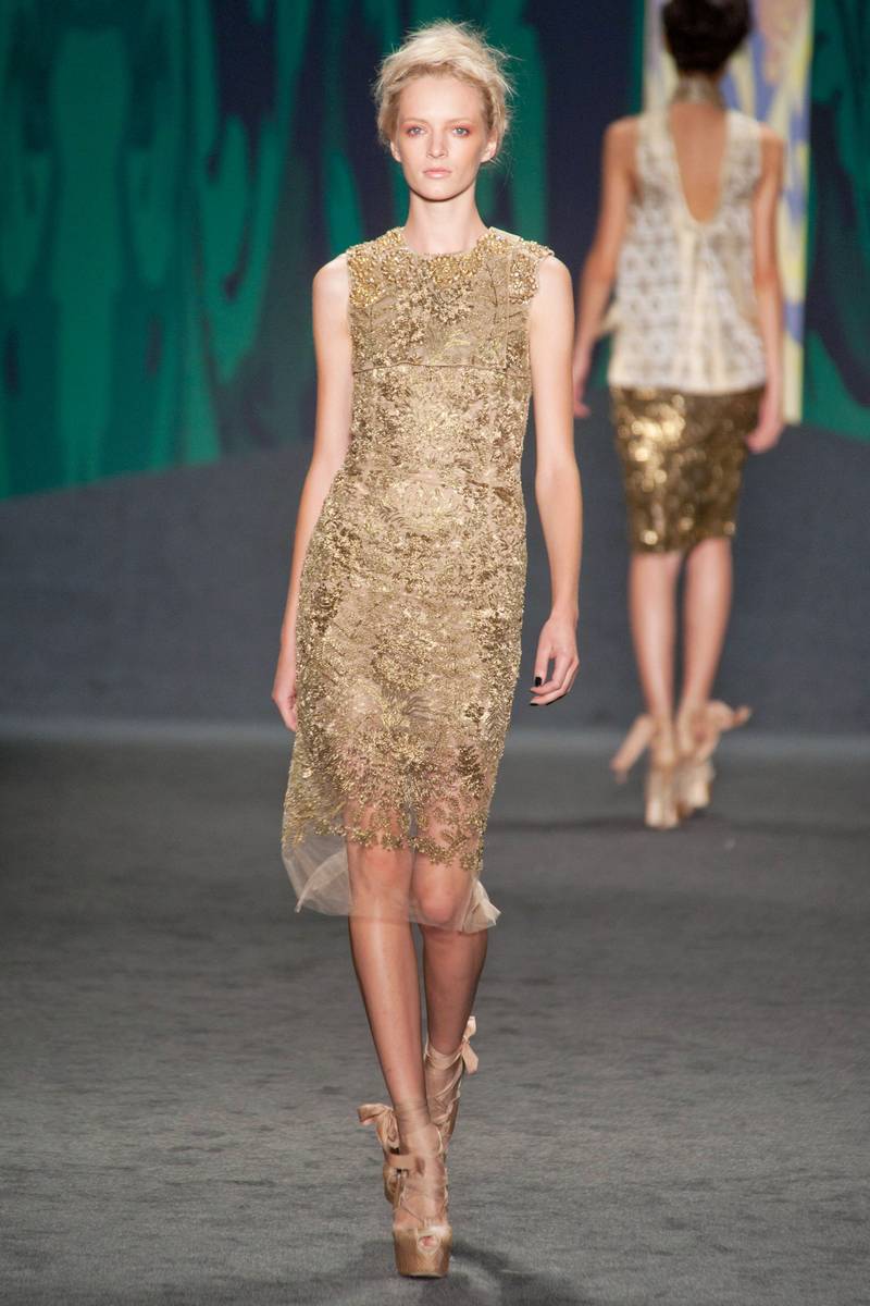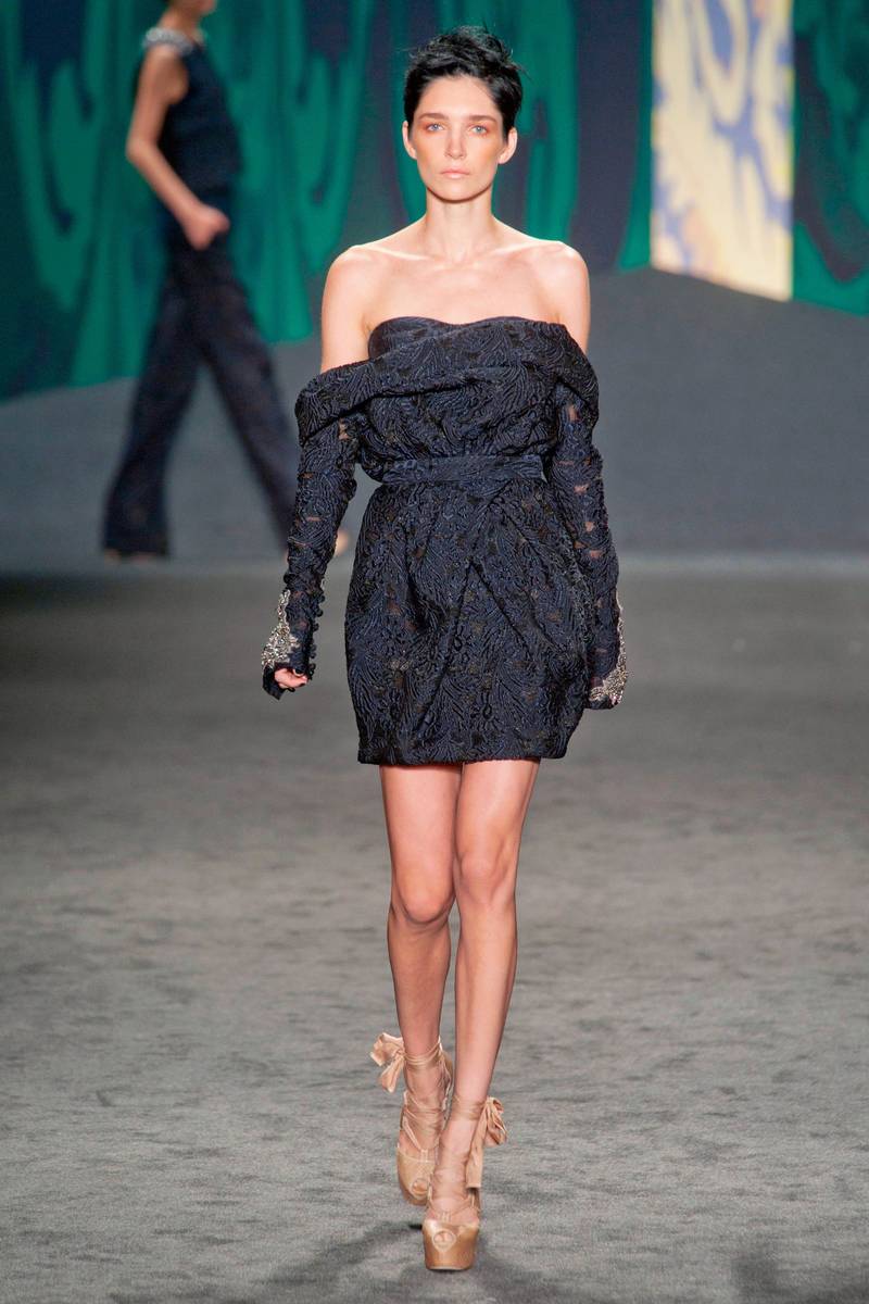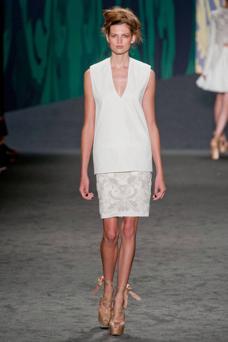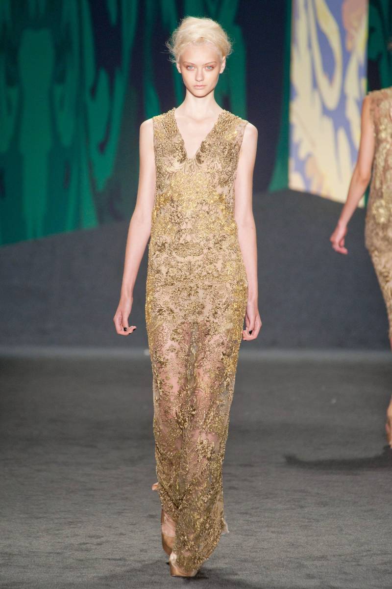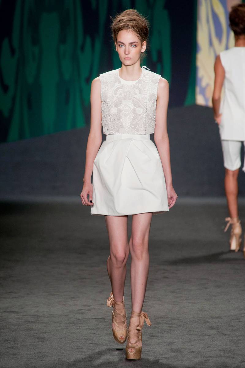 We’ve noticed a lot more beaded details through out the Vera Wang Spring 2013 collection – as well as lace. All this adds that extra feminine effect towards the designs. Another trend we see peeping through this Spring 2013 is the off shoulder cutting.