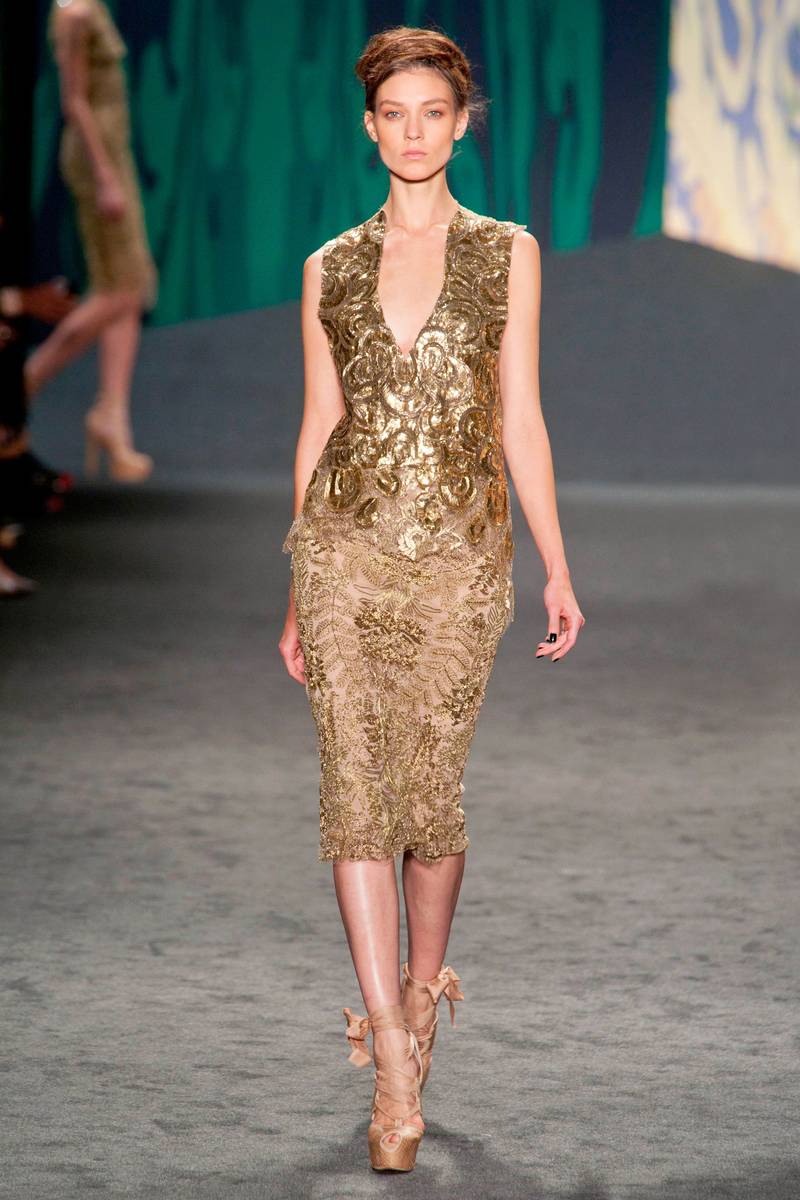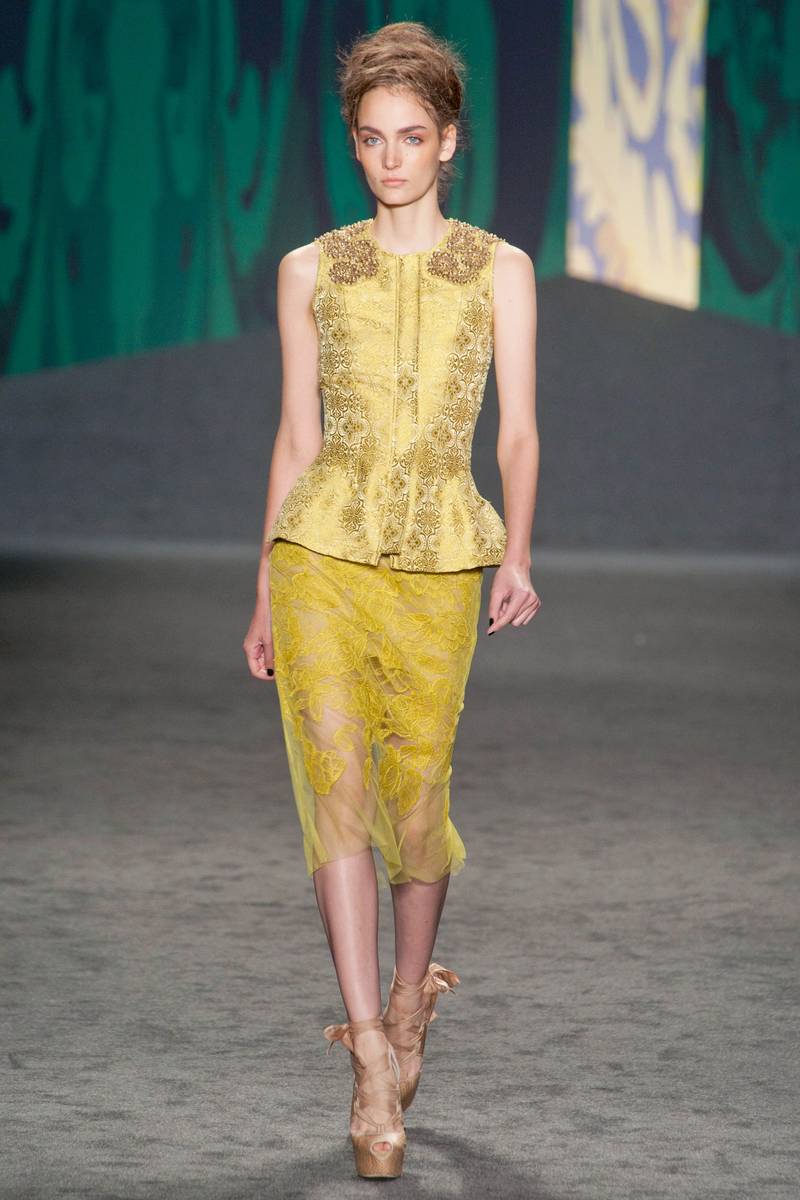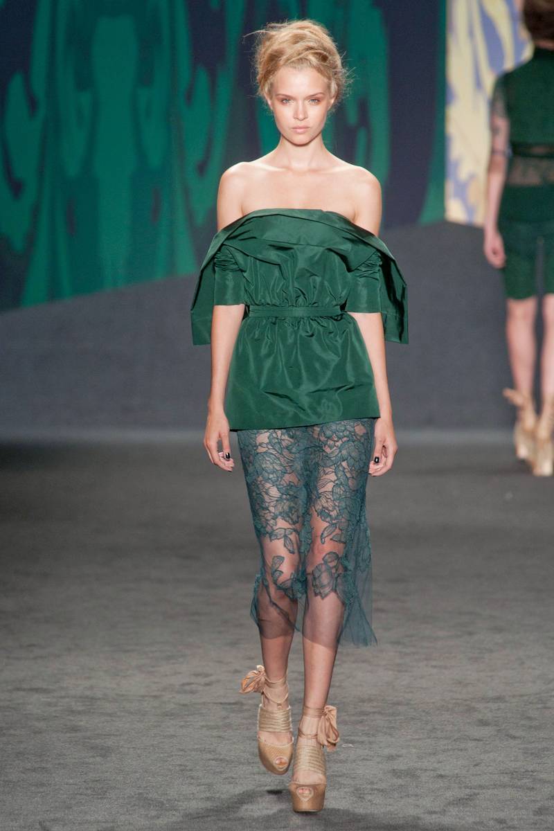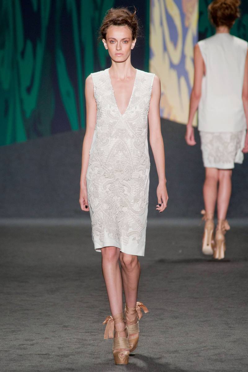 We’ve noticed a lot more beaded details through out the Vera Wang Spring 2013 collection – as well as lace. All this adds that extra feminine effect towards the designs. Another trend we see peeping through this Spring 2013 is the off shoulder cutting.
