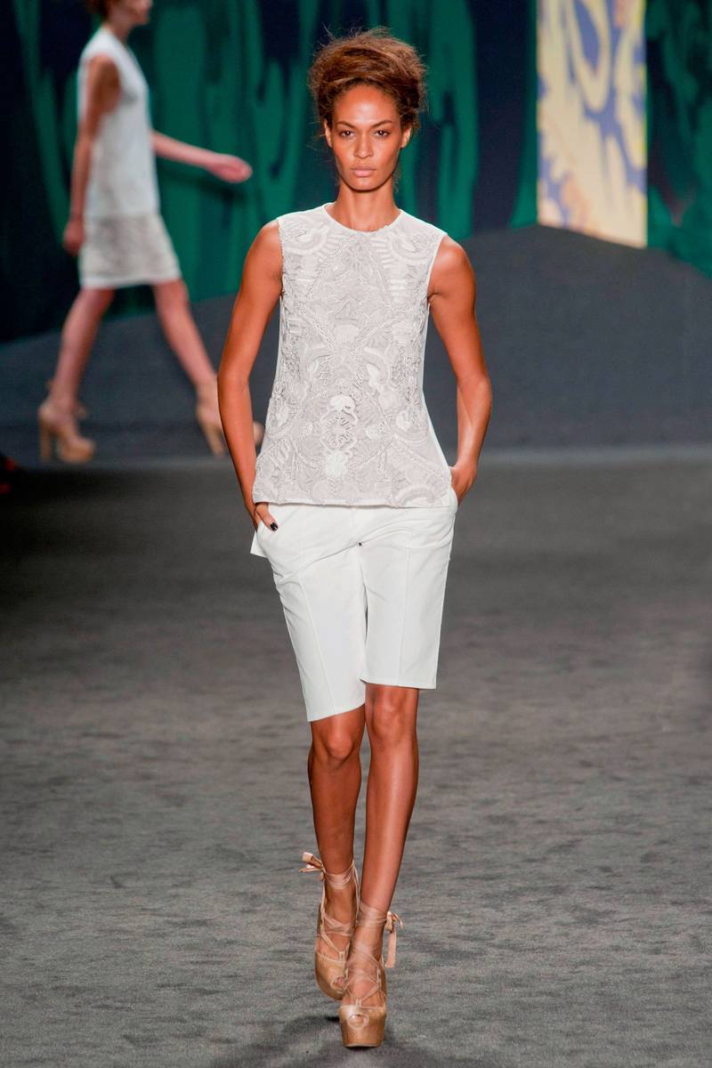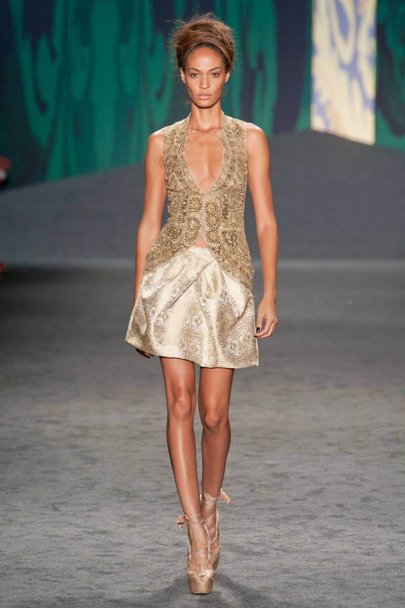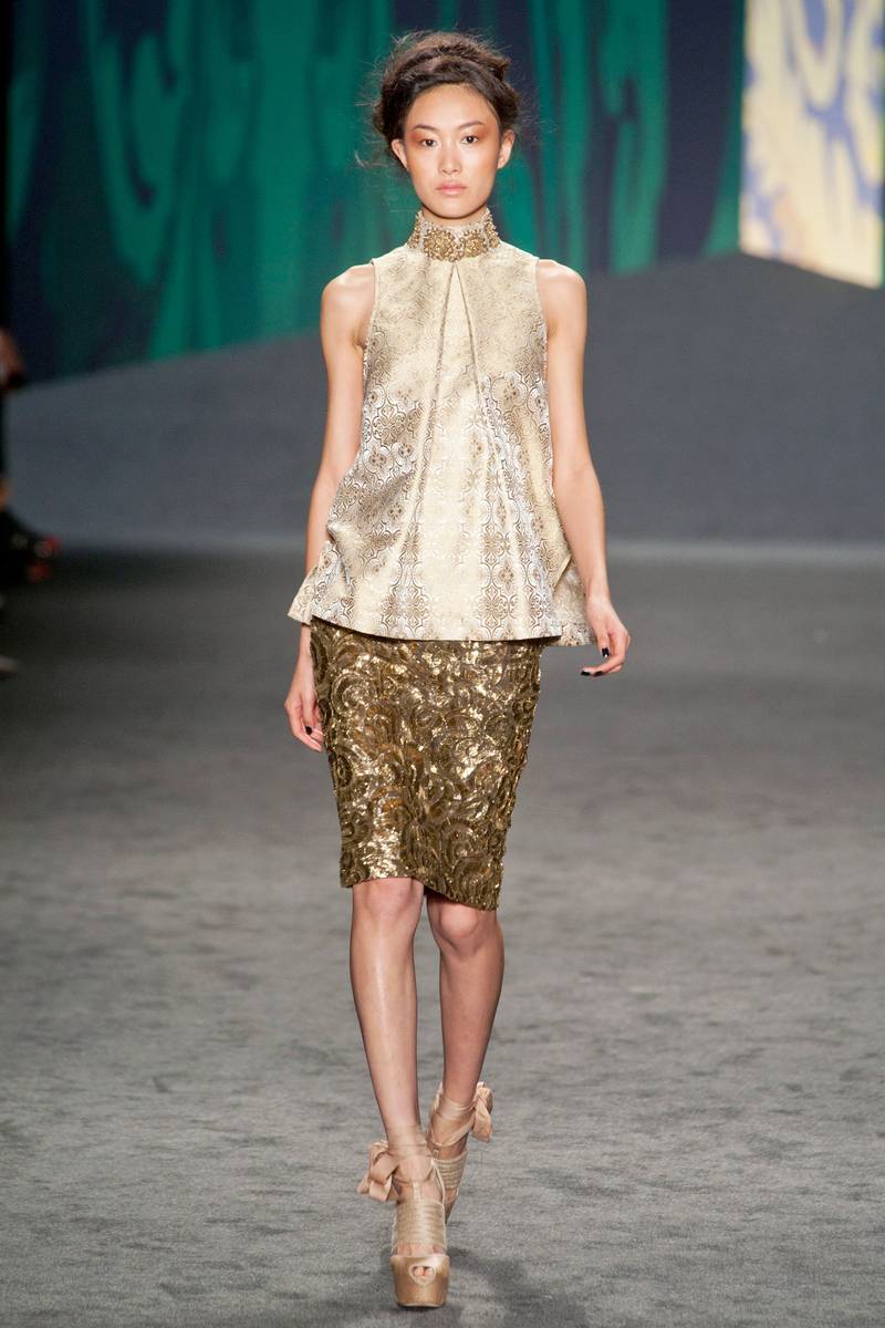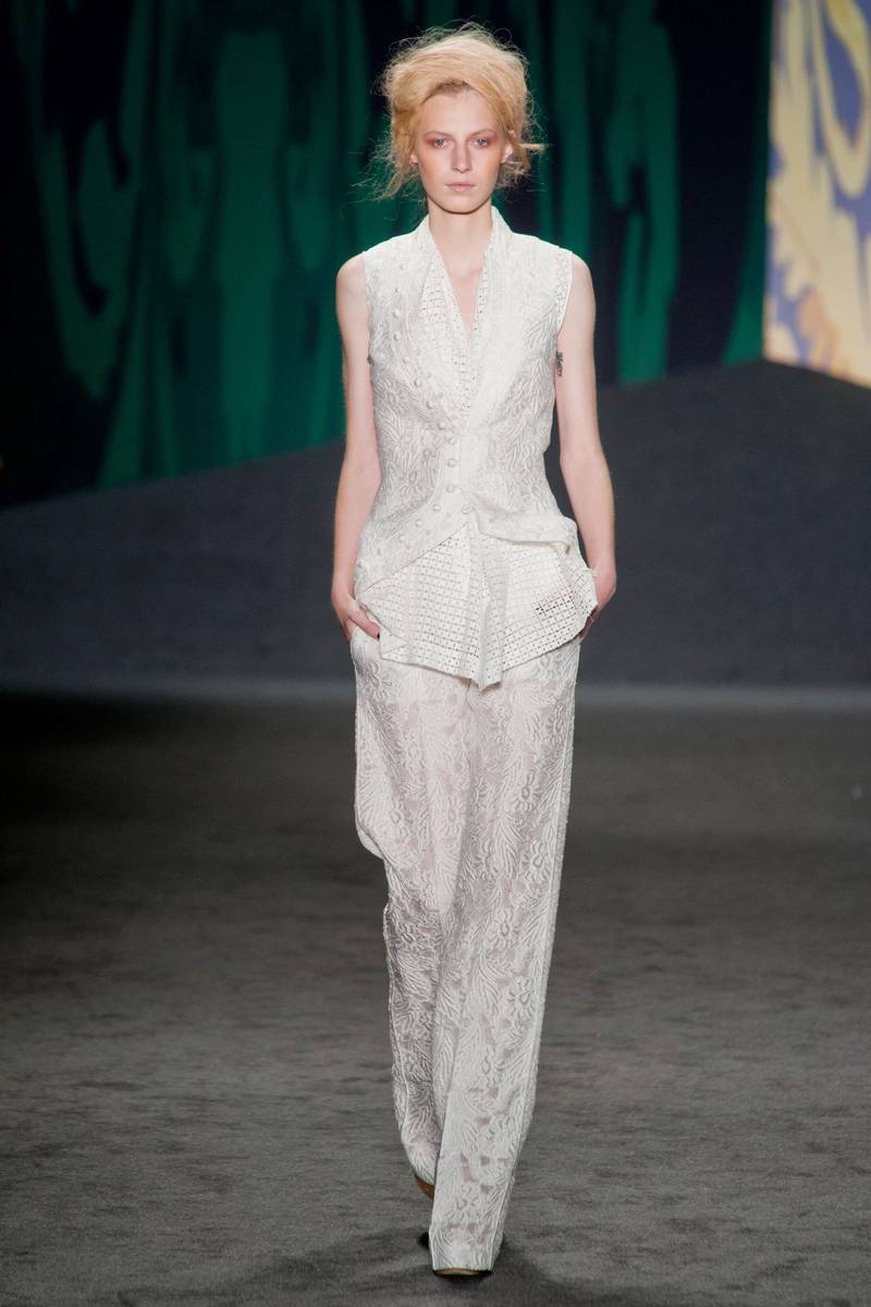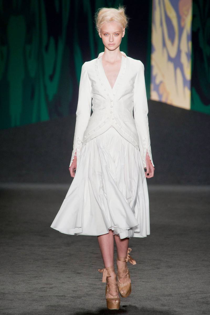 We’ve noticed a lot more beaded details through out the Vera Wang Spring 2013 collection – as well as lace. All this adds that extra feminine effect towards the designs. Another trend we see peeping through this Spring 2013 is the off shoulder cutting.