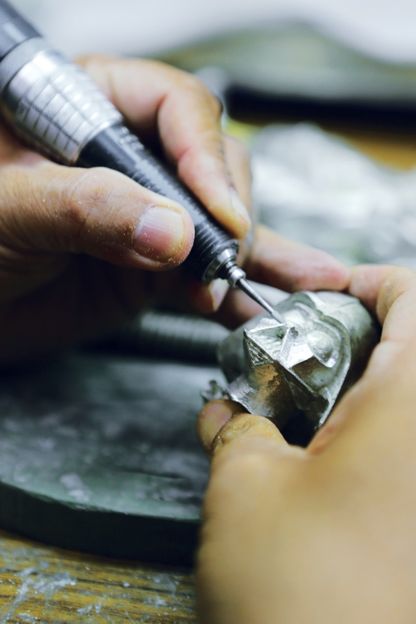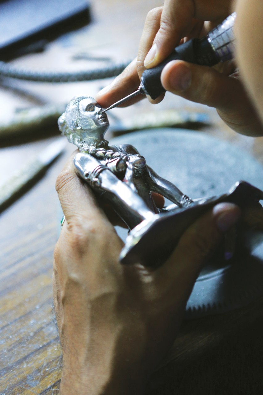 Recreating the manner and dress of beloved Star Wars characters in pewter was a formidable endeavour. The first step was to reference on-set photos, film screenshots and Lucasfilm approved reproduction art. Upon determining the features and specifications of each character, the tedious job of sculpting each figurine is a detailed process that took several weeks as even tiny fractions of a millimetre can make a figurine instantly recognisable.