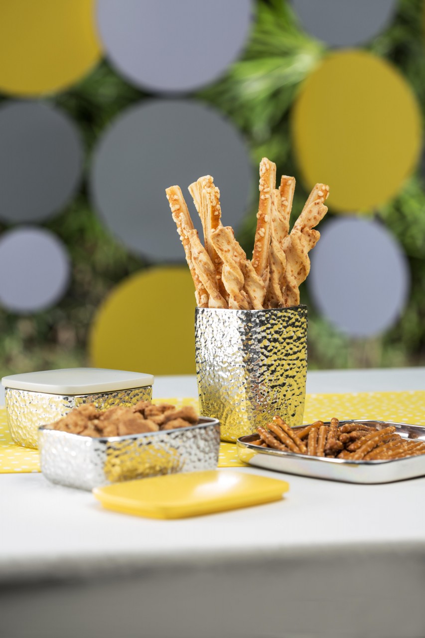 We can often agree that less is more and simplicity is key. This So collection focuses on just that by taking on a more relaxed and modern approach with its sleek curves and dimpled surface compressed onto a tray, tumbler, salt & pepper shakers, and two lidded containers. Perfect for intimate, laid-back events.